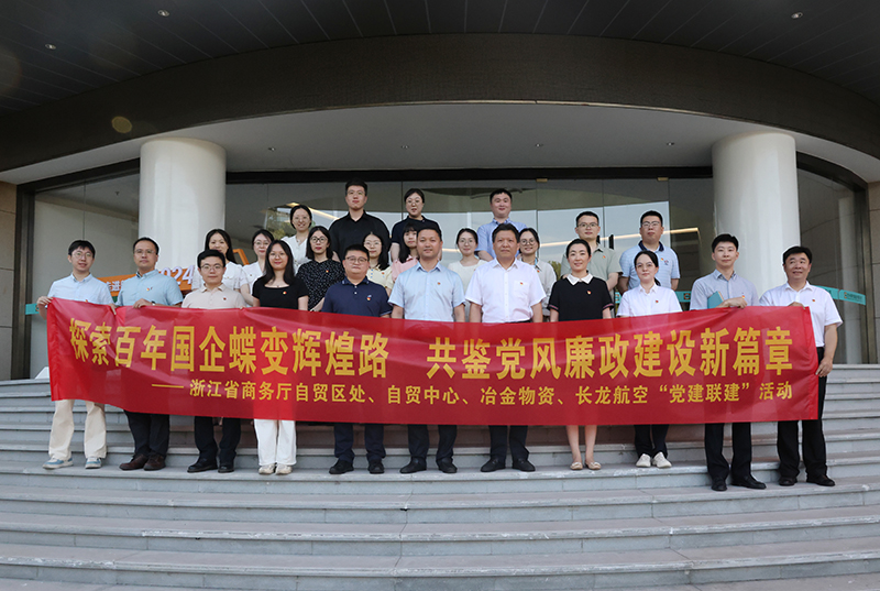 7月23日,浙江省商務(wù)廳自貿(mào)區(qū)處、浙江省自由貿(mào)易發(fā)展中心、浙江長龍航空有限公司、浙江省冶金物資有限公司四方開展黨建聯(lián)建交流學(xué)習(xí)。省商務(wù)廳自貿(mào)區(qū)處處長駱林勇,省自由貿(mào)易發(fā)展中心主任陳巧艷,冶金物資黨委副書記、紀(jì)委書記、監(jiān)事會主席陳建,長龍航空機(jī)關(guān)黨支部書記、總監(jiān)徐文龍等參加活動。