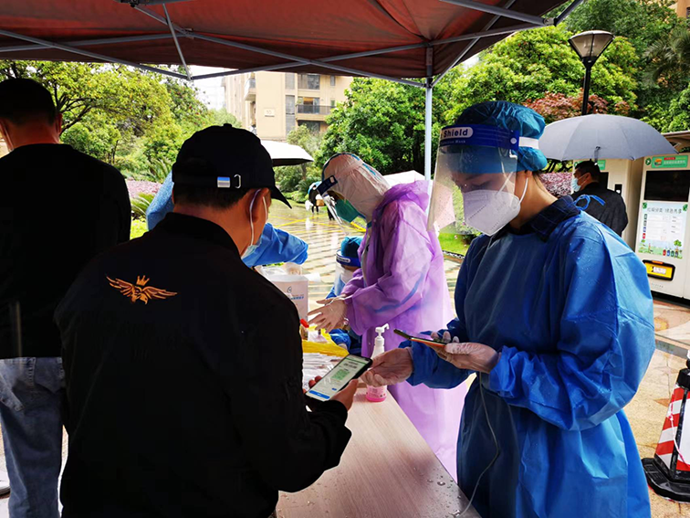 管控小區(qū)中,此刻白衣作戰(zhàn)袍集結(jié)于此!在小區(qū)尋求業(yè)主幫助的時(shí)候,冶金物資領(lǐng)導(dǎo)第一時(shí)間主動(dòng)報(bào)名,沖鋒在前,搬運(yùn)物資,測(cè)量體溫,貢獻(xiàn)自己的力量;在杭鋼集團(tuán)召集杭鋼青年作志愿者的時(shí)候,冶金物資的青年員工義無(wú)反顧地填下了自己的名字,凌晨穿上防護(hù)服,陸續(xù)進(jìn)入前線,維護(hù)秩序、掃碼核驗(yàn)、協(xié)助上門(mén)采樣……
